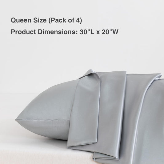 BIGPAWL 4 Pack Queen Satin Pillowcase for Hair and Skin, Satin Pillow Case with Envelope Closure, Similar to Silk Pillow Cases, Satin Pillowcase Silver Grey, Gifts for Women Men